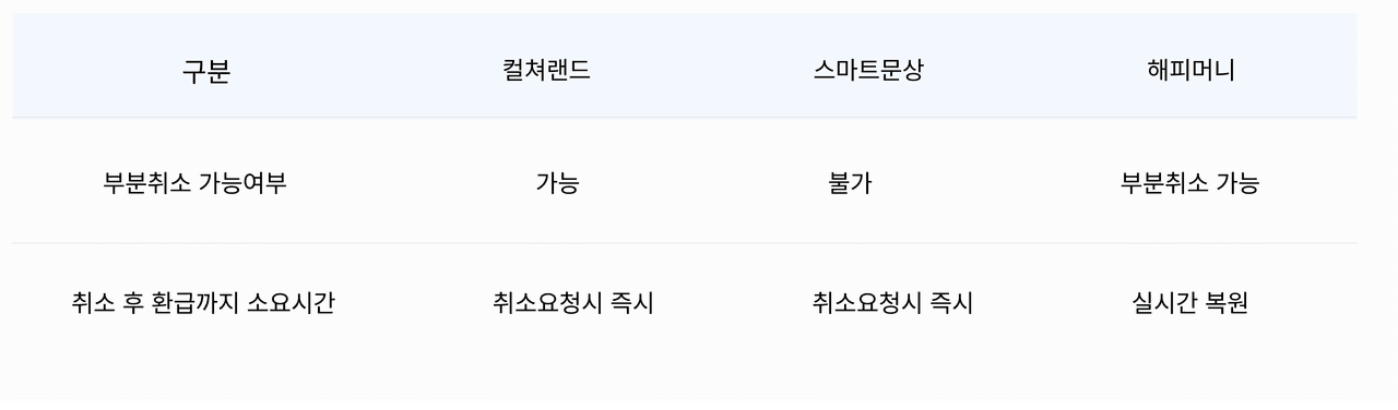 일부 결제수단은 원천사의 정책에 따라 부분 취소를 지원하지 않는 경우도 있습니다. 참고하실 수 있는 부분 취소가 불가한 케이스를 안내드립니다.