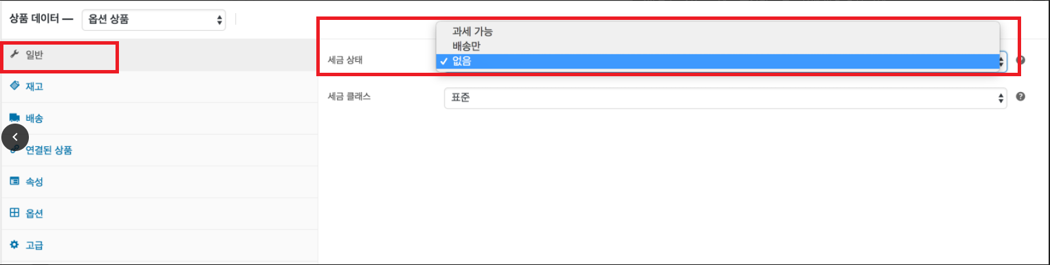 워드프레스 > 상품별로 세금 설정(과세가능/없음)